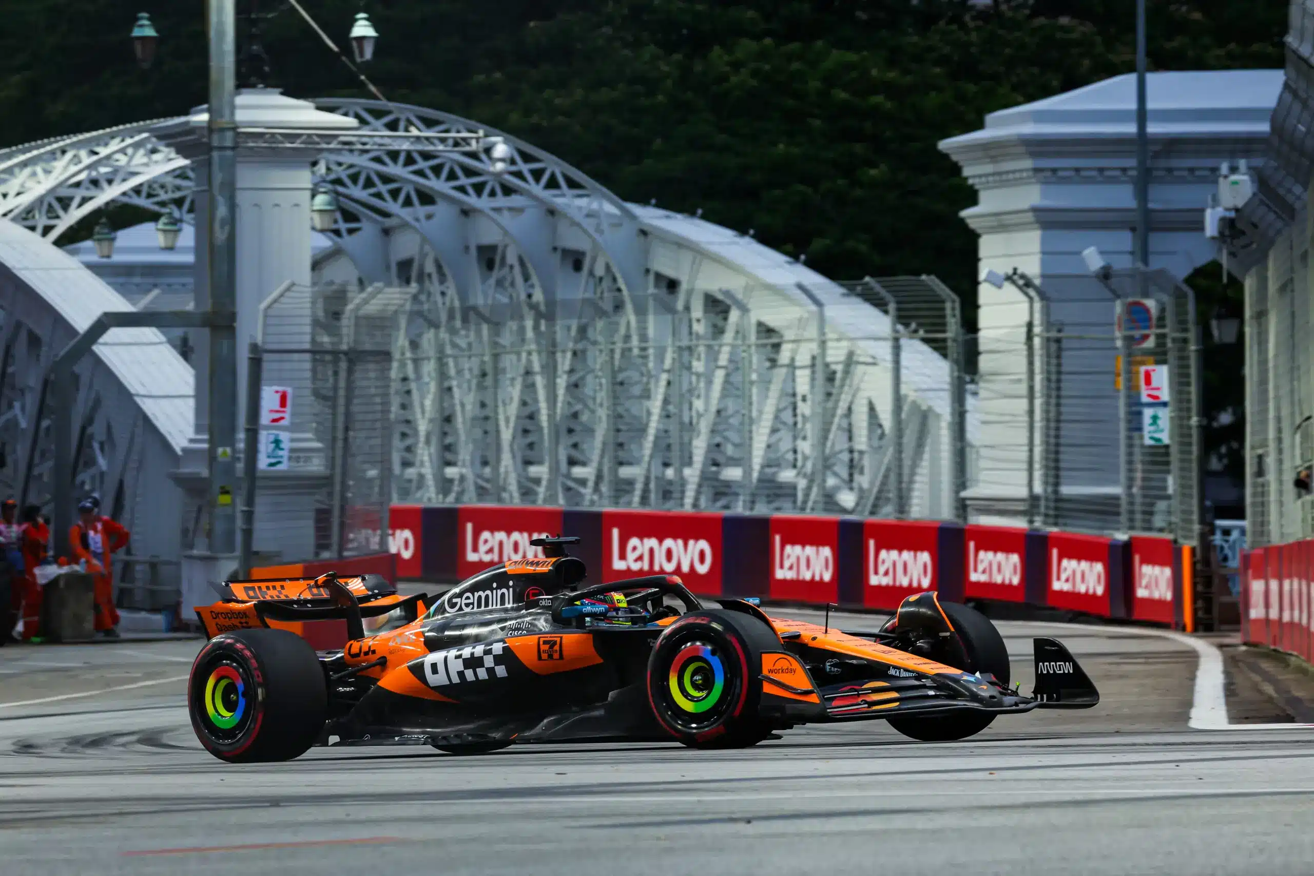 Az F1 Szingapúri Nagydíjának második, villanyfényes edzésén Oscar Piastri volt a leggyorsabb, míg a Mercedesnél ezúttal George Russell bontotta le az autót, akinek a rossz példáját Liam Lawson követte.