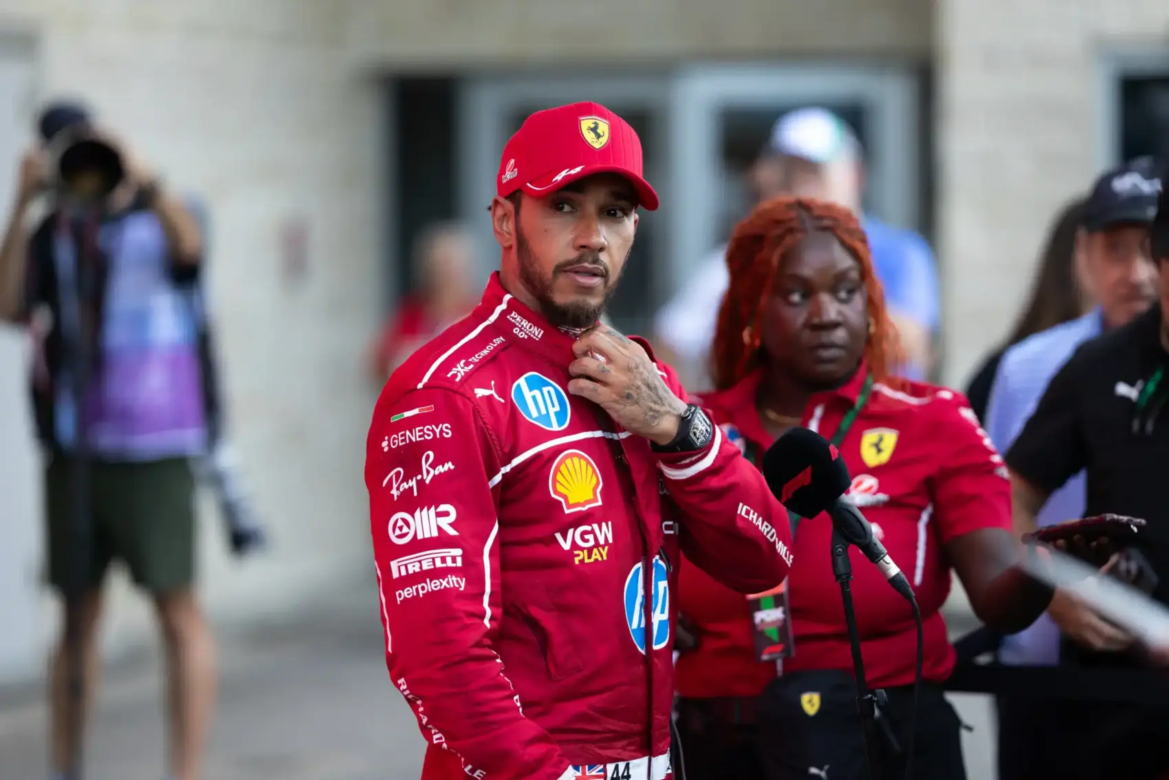 Hamilton az interjú végén arra célzott, hogy továbbra sem állhatott dobogóra a Ferrari színeiben, amivel egyébként megdöntött egy 43 éve fennálló negatív rekordot. A Ferrarival a 19. futamán, az 1982-es San Marinó-i Nagydíjon először dobogóra álló (ő rögtön nyert is) Didier Pironinak volt ugyanis eddig szüksége a legtöbb futamra a Scuderia történetében ahhoz, hogy a top 3-ban végezzen, és mivel Hamiltonnak ez volt a 19. versenye vörösben, és most sem lett dobogós, mostantól ő a negatív csúcstartó ezen a téren.