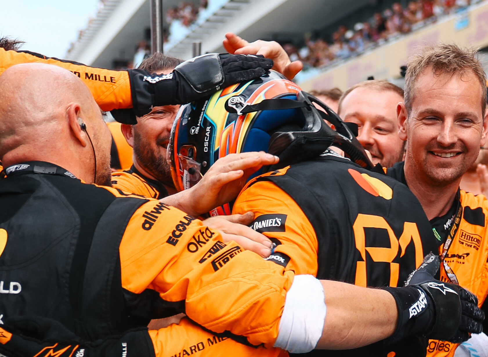 Miután learatta a gratulációkat a McLaren csapattagjaitól, Piastri az alábbi, néhány másodperces produkciót mutatta be a kamerák előtt, majd elsétált a mérlegelésre.