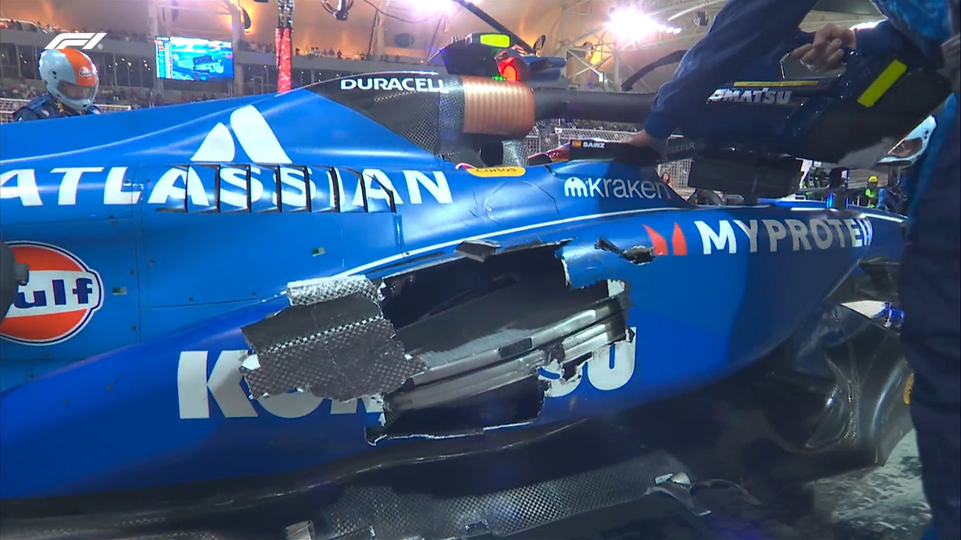 Carlos Sainz a Bahreini Nagydíj egyetlen kiesője lett, pedig a Yuki Tsunodával való ütközésig ígéretesen alakult számára a futam, ráadásul fontos lépést vitt véghez új csapatánál azáltal, hogy időmérőn idén először győzte le csapattársát, Alexander Albont, s a futamon is ő autózott a legjobb tíz között, amíg egy jókora lyuk nem keletkezett az autóján.